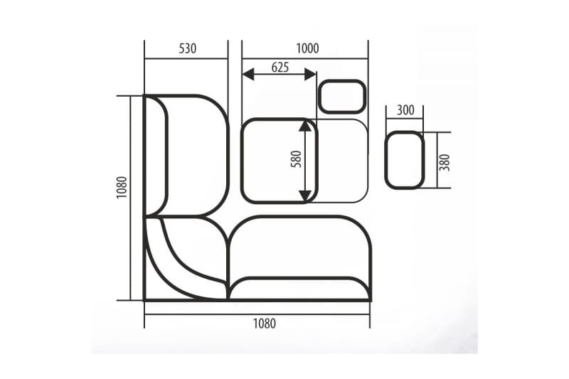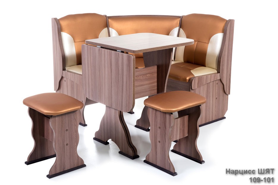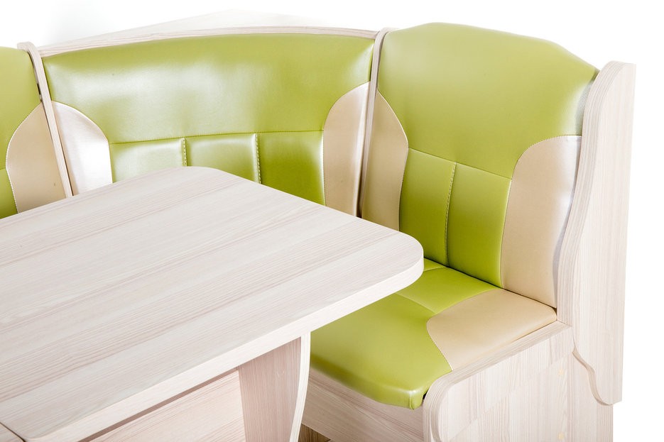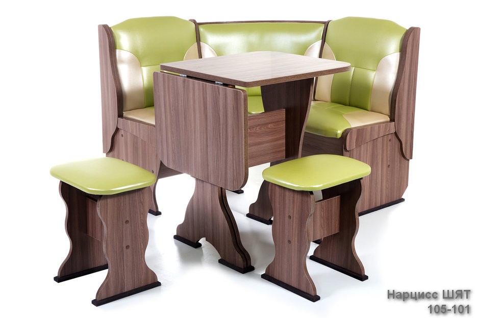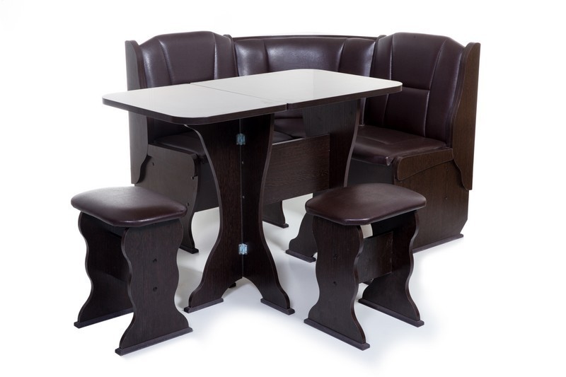 Особенности уголка: Поможет обустроить комфортную обеденную зону без лишних затрат. В гарнитур входит угловой диван, два табурета и раскладной стол. В угловой части дивана есть удобная полочка, на которую можно поставить нужные вещи. Под сидениями находятся вместительные ящики для хранения. Имеет термостойкую пластиковую столешницу. Угол собирается как в правом, так и в левом исполнении. Размеры: Размер угловой скамьи: ш(1080х1080)хг530хв880 мм. Размер стола: ш625(1000)хг580хв750 мм. Размер табурета: ш380хг300хв450 мм. Высота уголка: 880 мм. Высота посадки скамьи: 465 мм. Высота табурета: 450 мм. Высота стола: 750 мм.