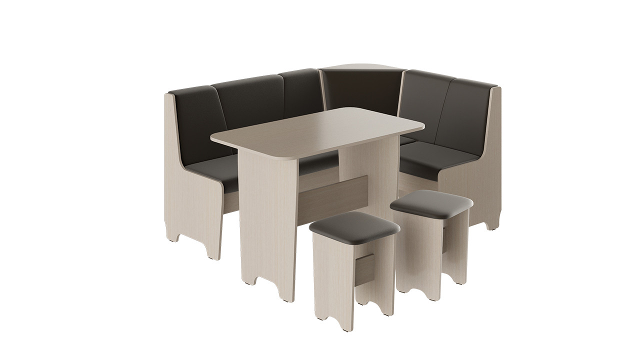 • Обеденная зона "Техас" состоит из удобной угловой скамьи, практичного стола и компактных табуретов.